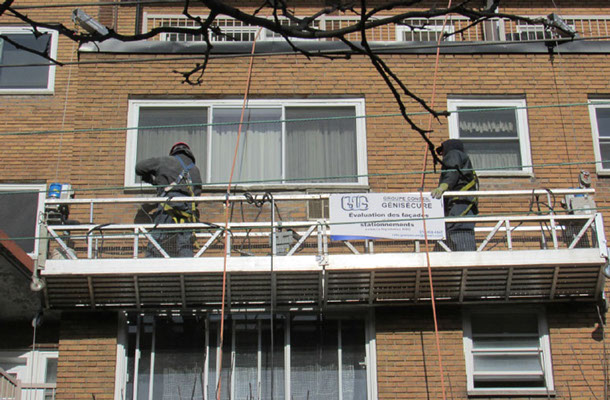Les propriétaires de bâtiments au Québec sont désormais exigés de retenir les services d’un ingénieur pour effectuer des inspections de façades et de garages de stationnement. En mars 2013, un nouveau règlement fut adopté par la Régie du bâtiment du Québec (RBQ) dans le but d’améliorer la sécurité publique. Ce règlement s’applique aux façades de bâtiments de cinq (5) étages ou plus et aux garages à étages. Les obligations découlant du règlement impliquent des inspections périodiques effectuées par des ingénieurs expérimentés, la production de rapports et la tenue de registre.